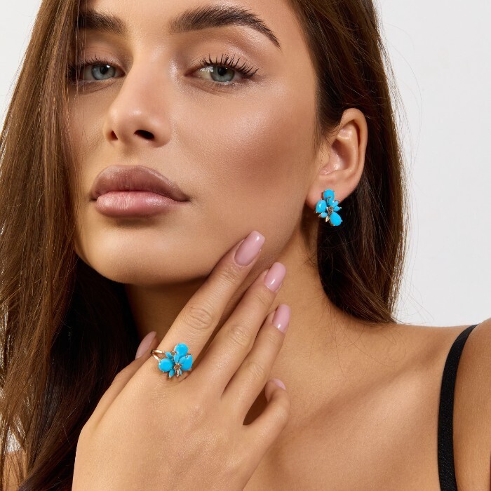 Комплект ювелирной бижутерии коллекция "Дубай" серьги и кольцо 17 р, покрытие позолота, вставка: стекло, цвет: бирюзовый, арт.215.563-17 2 фото