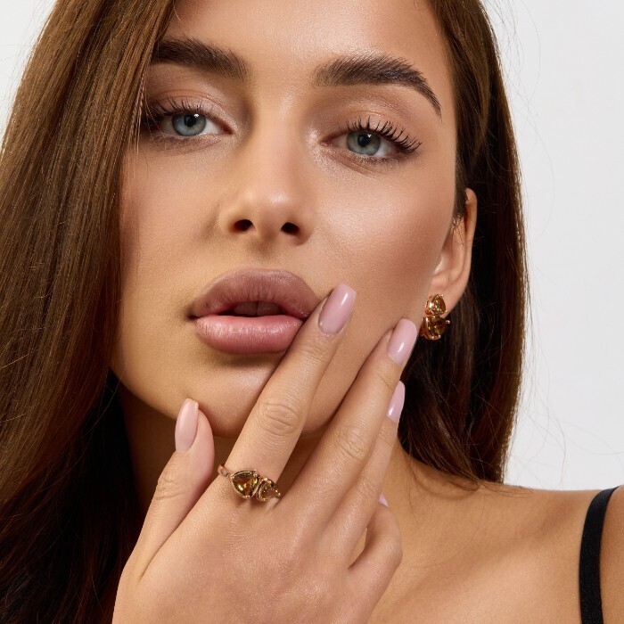 Комплект ювелирной бижутерии коллекция "Дубай" серьги и кольцо 18 р, покрытие позолота, вставка: стекло, цвет: шампань, арт.414.192-18 2 фото
