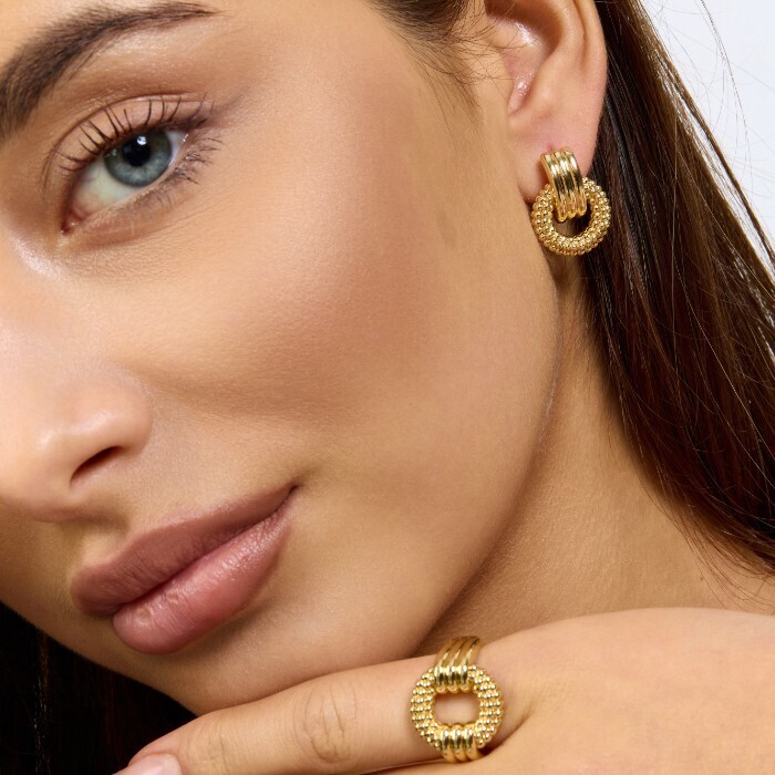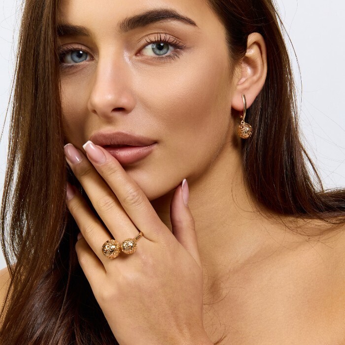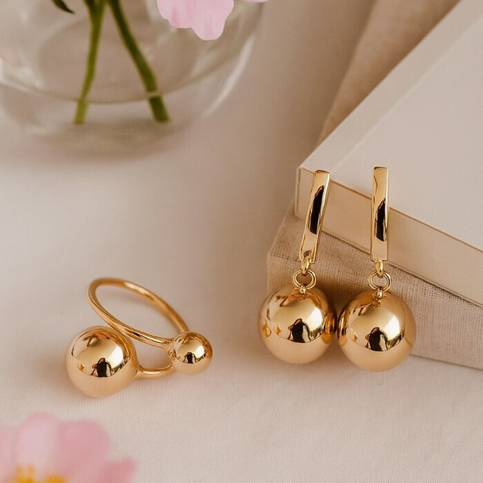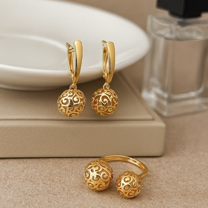 Комплект ювелирной бижутерии коллекция "Дубай" серьги и кольцо разъемное 19-20 р, покрытие позолота,  арт.217.376-19-20 2 фото