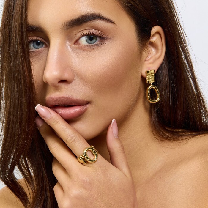 Комплект ювелирной бижутерии Итальянское золото (покрытие желтое 14к) серьги и кольцо 19 р, арт.217.404-19 2 фото