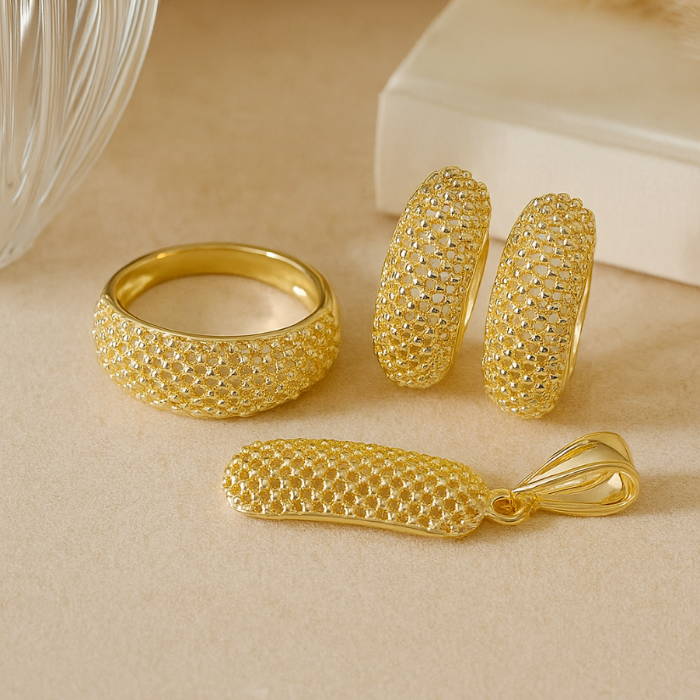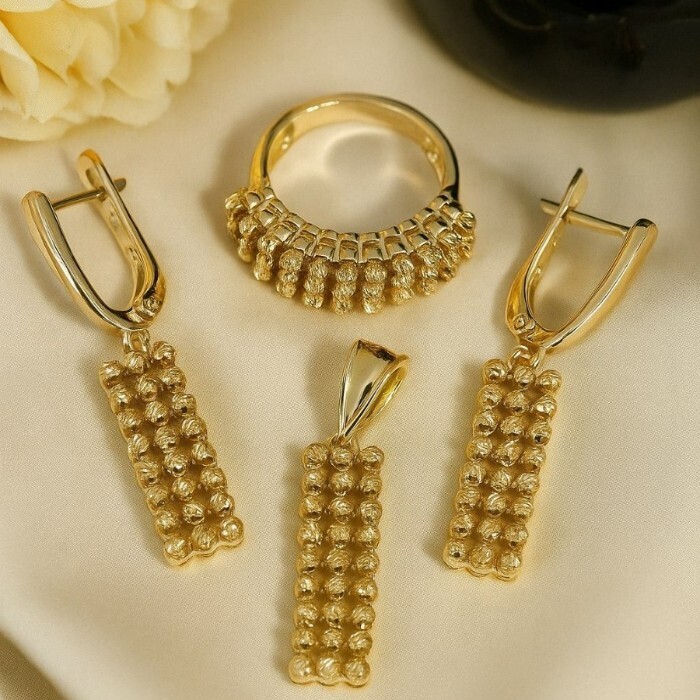 Комплект ювелирной бижутерии Итальянское золото (покрытие желтое 14к) серьги, кулон и кольцо 18 р, арт.217.396-18 2 фото