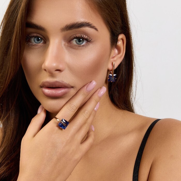 Комплект ювелирной бижутерии коллекция "Дубай" серьги и кольцо 17 р, покрытие позолота, вставка: стекло, цвет: синий, арт.414.173-17 2 фото