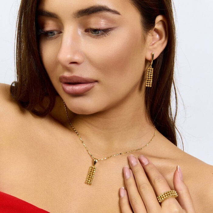 Комплект ювелирной бижутерии Итальянское золото (покрытие желтое 14к) серьги, кулон и кольцо 19 р, арт.217.396-19 2 фото
