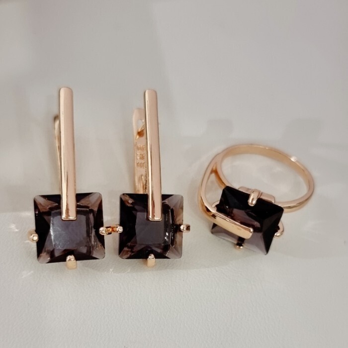 Комплект ювелирной бижутерии коллекция "Дубай" серьги и кольцо 18 р, покрытие позолота, вставка: стекло, цвет: черный, арт.414.166-18 2 фото