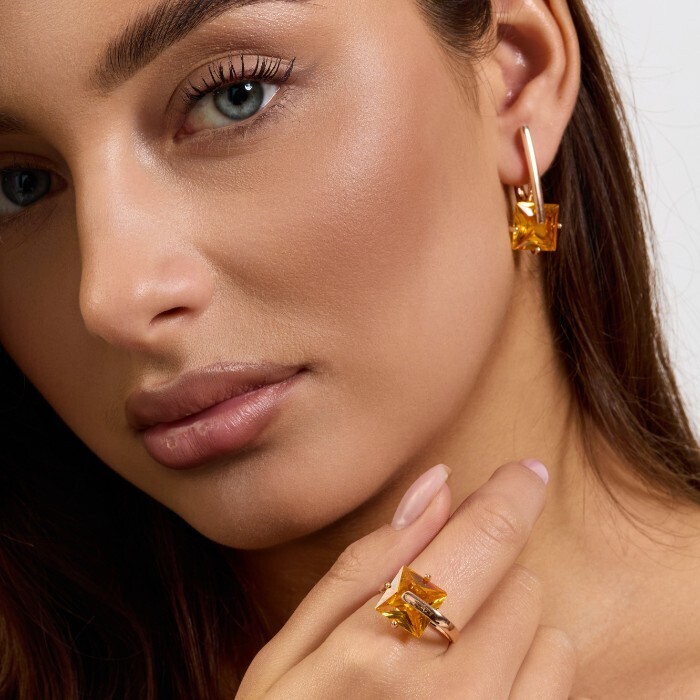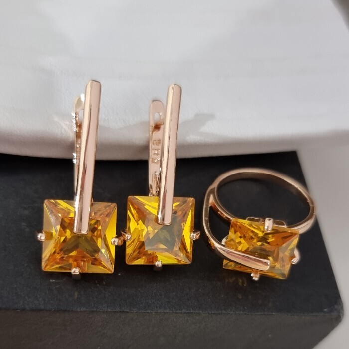 Комплект ювелирной бижутерии коллекция "Дубай" серьги и кольцо 17 р, покрытие позолота, вставка: стекло, цвет: желтый, арт.414.174-17 2 фото