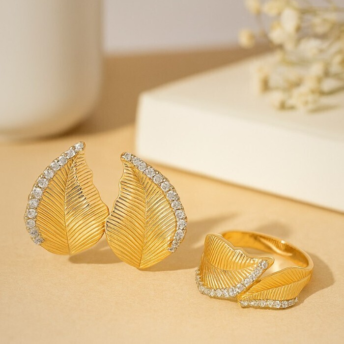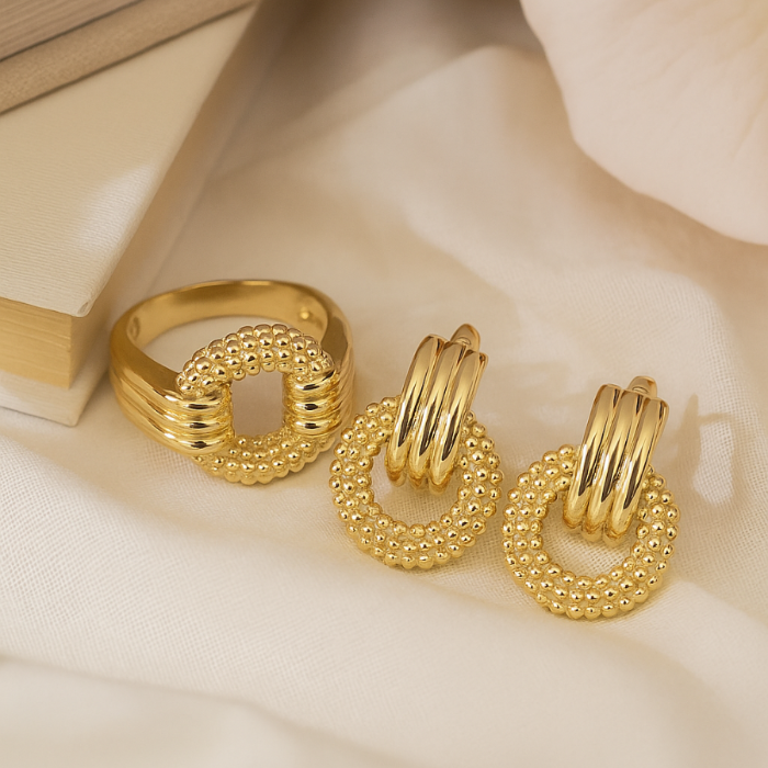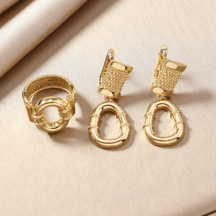 Комплект ювелирной бижутерии Итальянское золото (покрытие желтое 14к) серьги и кольцо 20 р, арт.217.404-20 2 фото