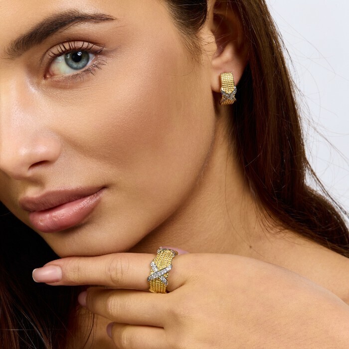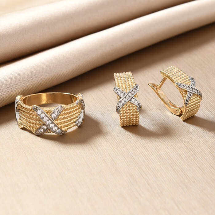Комплект ювелирной бижутерии Итальянское золото (покрытие желтое 14к) серьги и кольцо 19 р, вставка: фианиты, цвет: прозрачный, арт.217.391-19 2 фото
