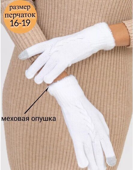 Перчатки женские, теплые, безразмерные, сенсорные, цвет белый, арт.56.1217 2 фото