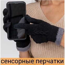 Перчатки женские, теплые, безразмерные, сенсорные, цвет черный, арт.56.1216 6 фото
