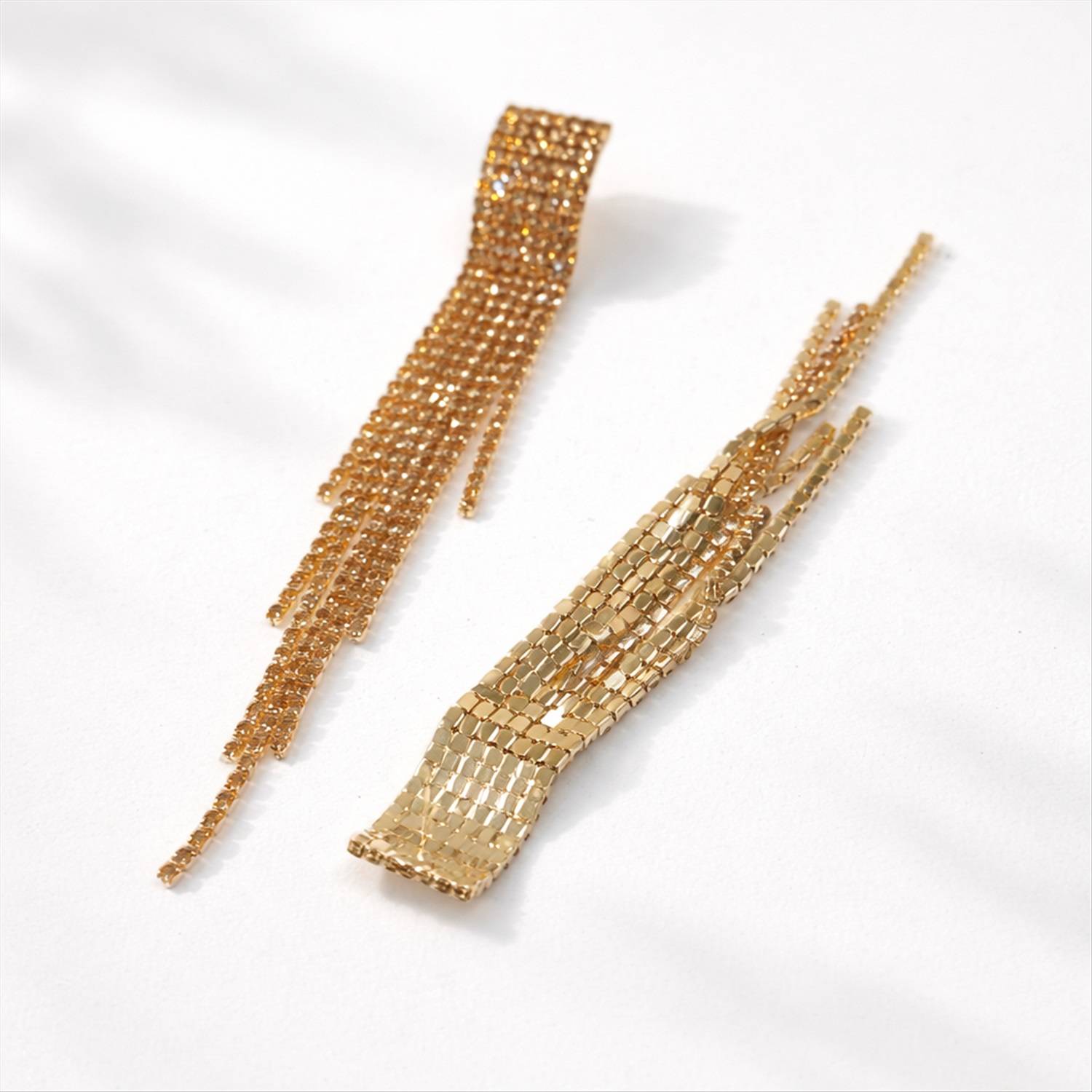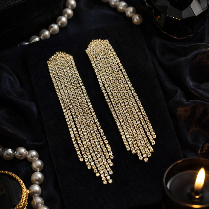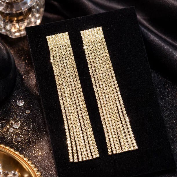 Серьги длинные женские вечерние со стразами, цвет: золотистый и прозрачный, арт.012.050 2 фото