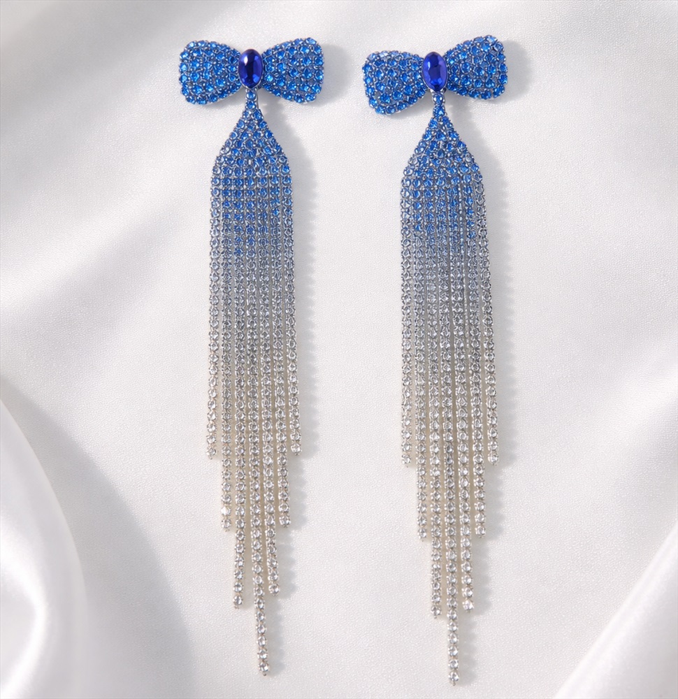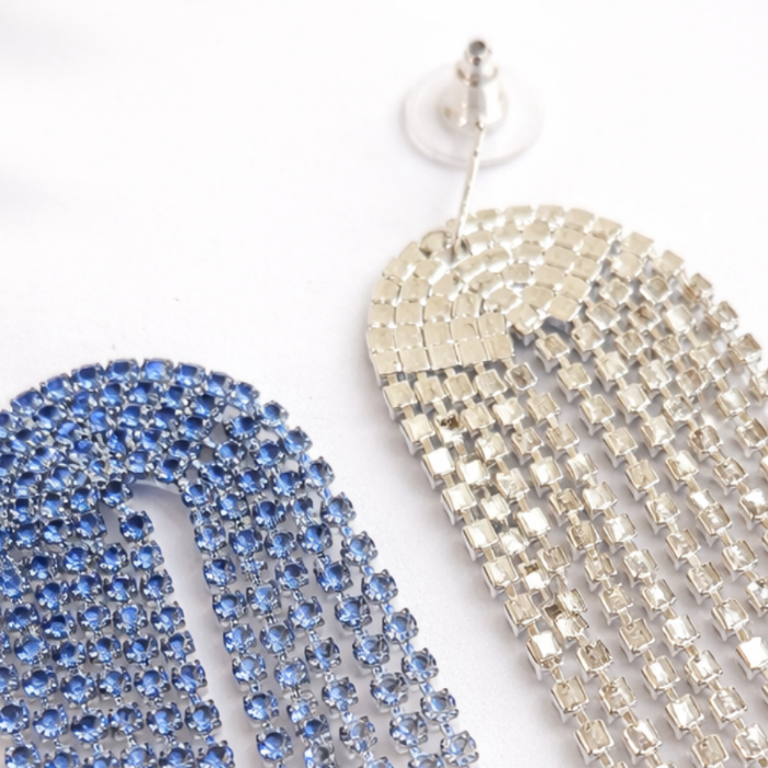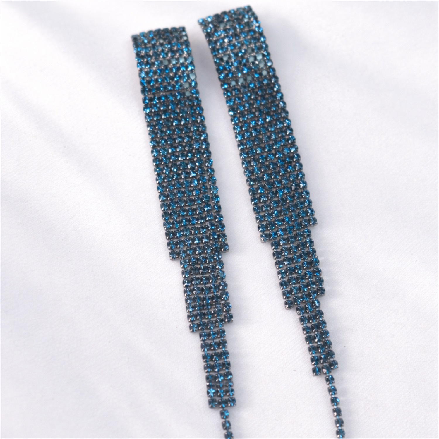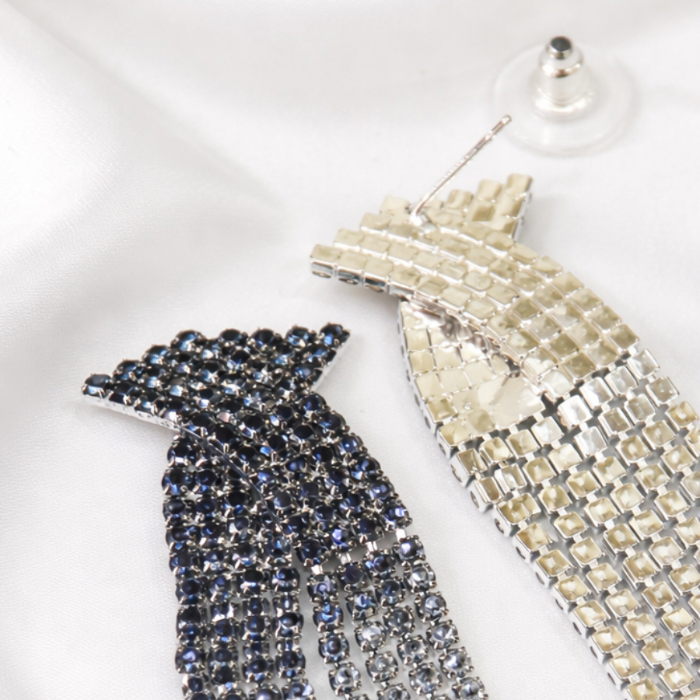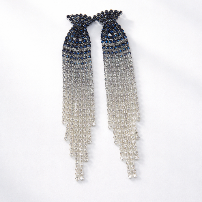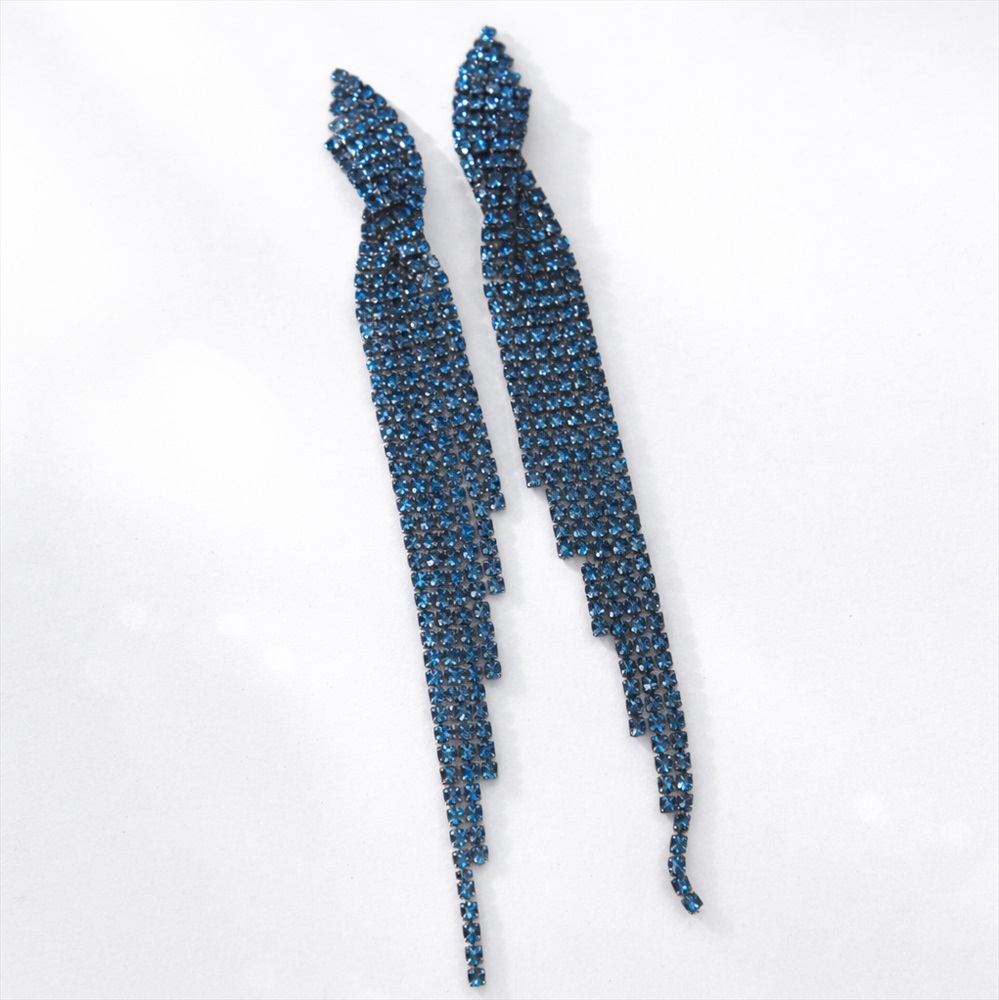Серьги длинные висячие со стразами "Вечерние", цвет: серебристый и сине-черный, арт.012.031 2 фото