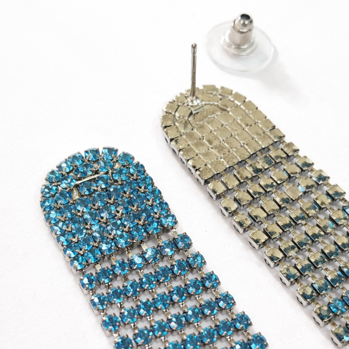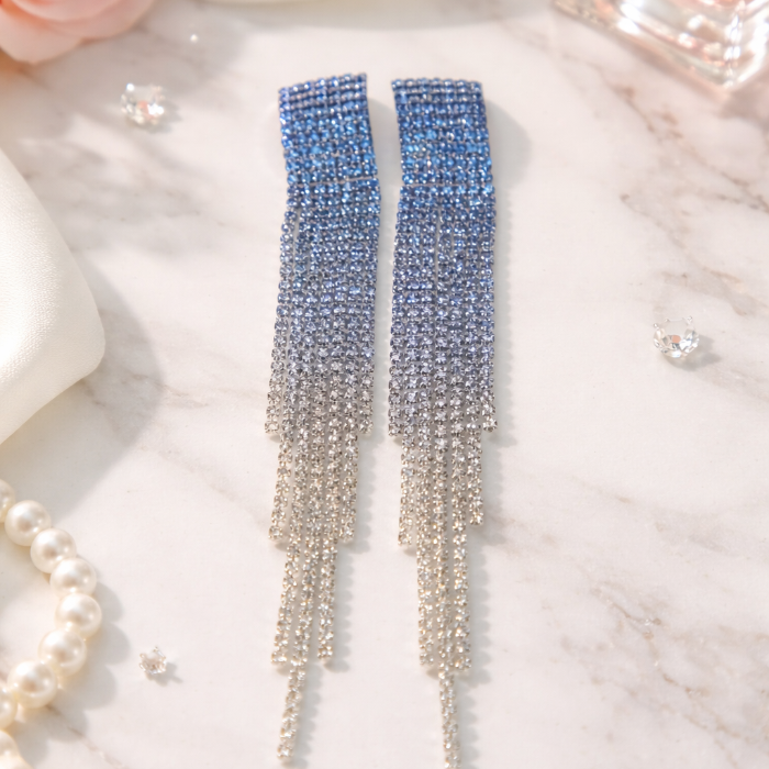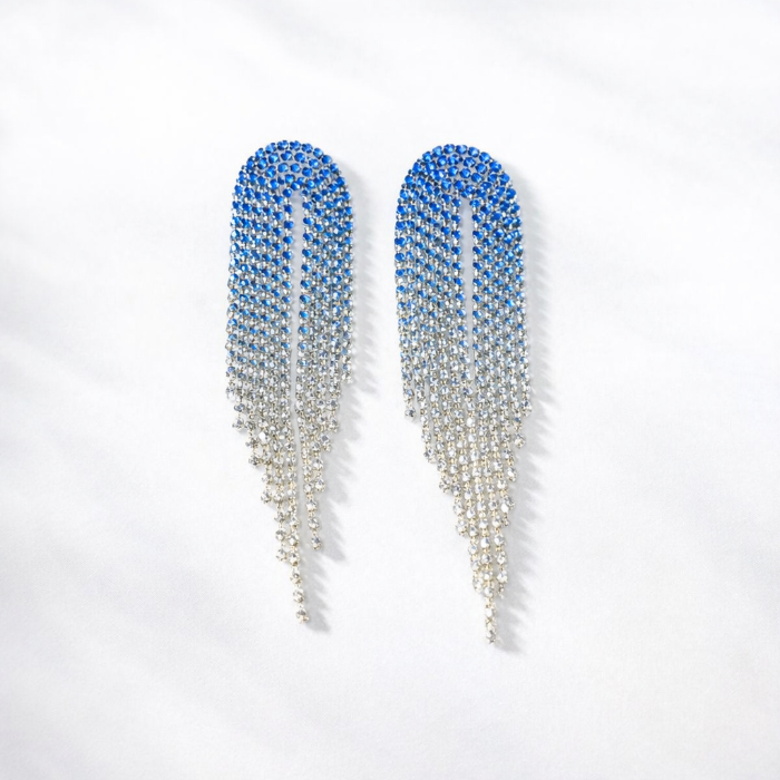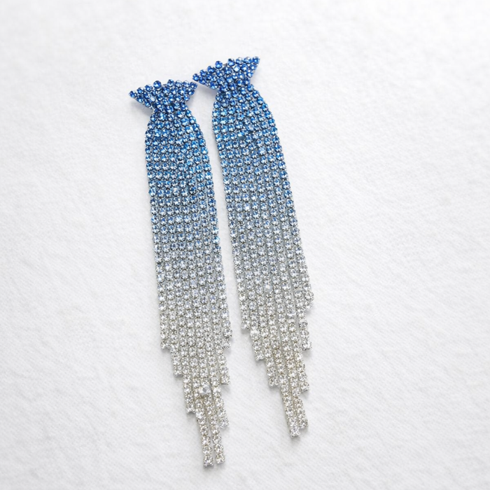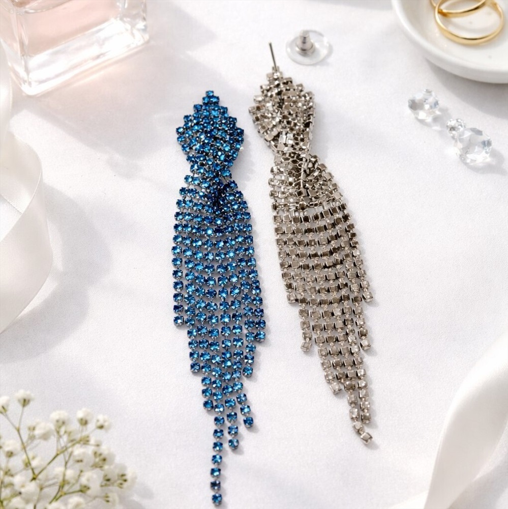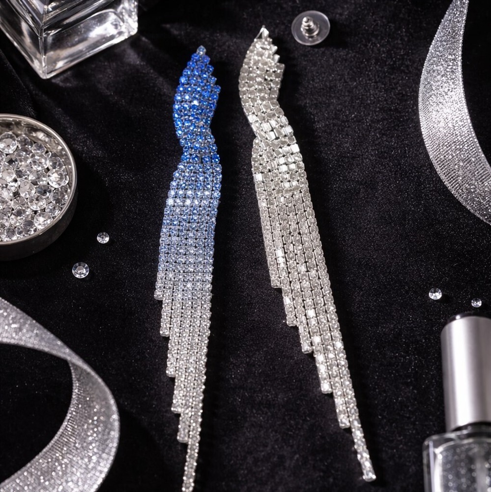 Серьги длинные висячие со стразами "Вечерние", цвет: серебристый и голубой, арт.012.034 2 фото