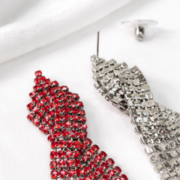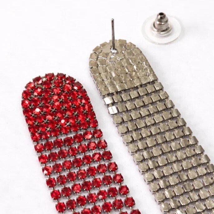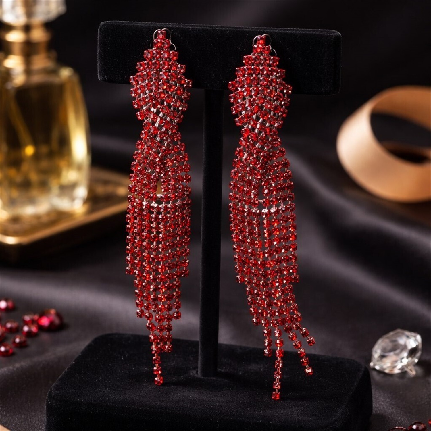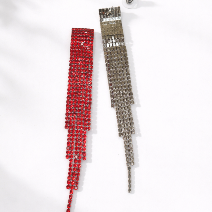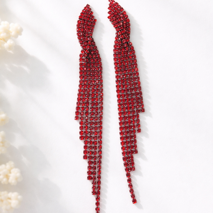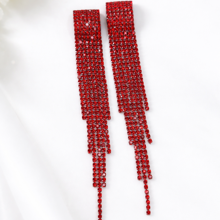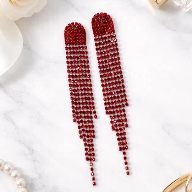 Серьги длинные висячие со стразами "Вечерние", цвет: красный, арт.012.011 2 фото