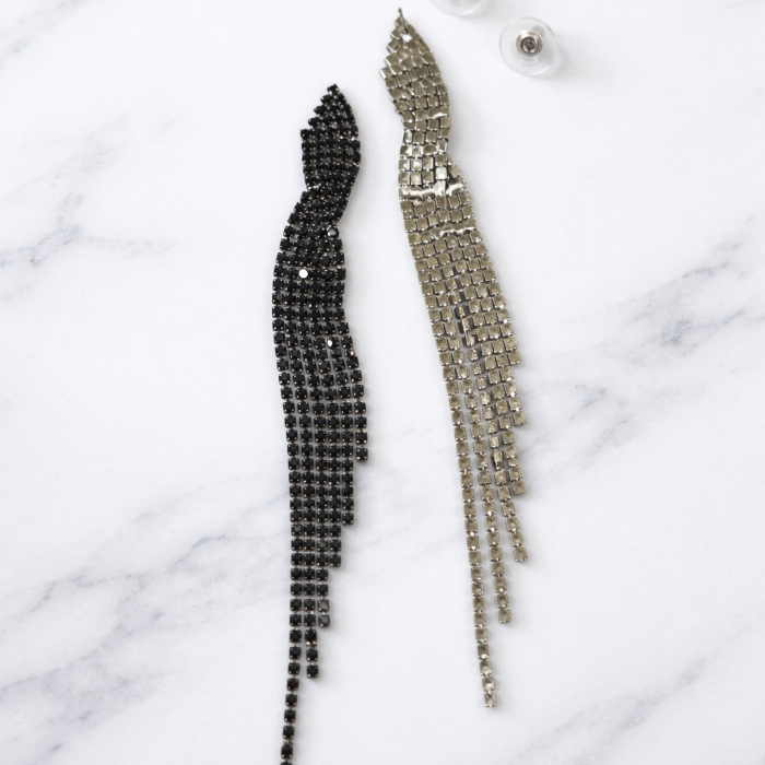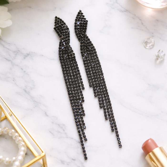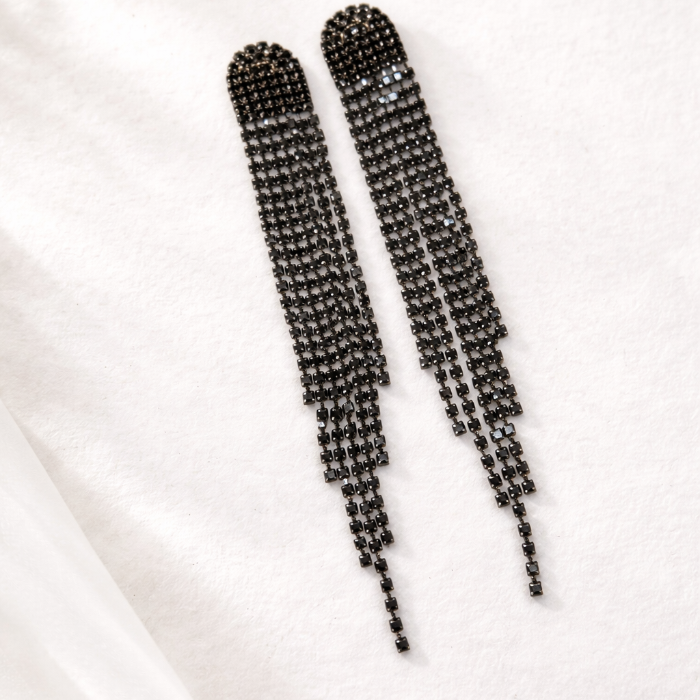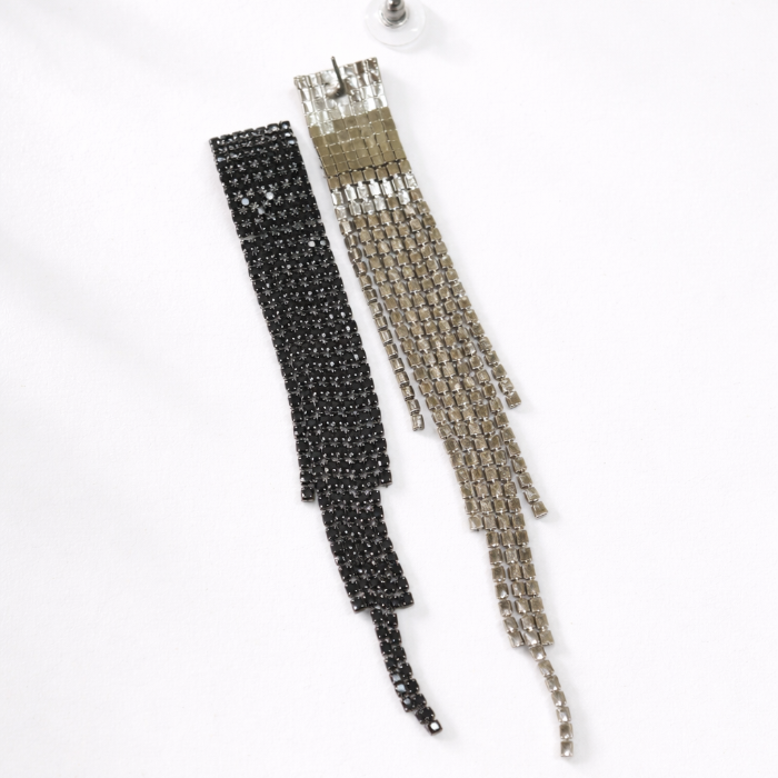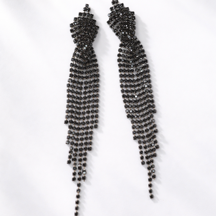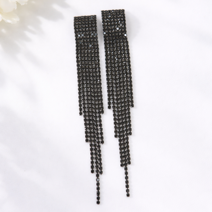 Серьги длинные висячие со стразами "Вечерние", цвет: черный, арт.012.020 2 фото