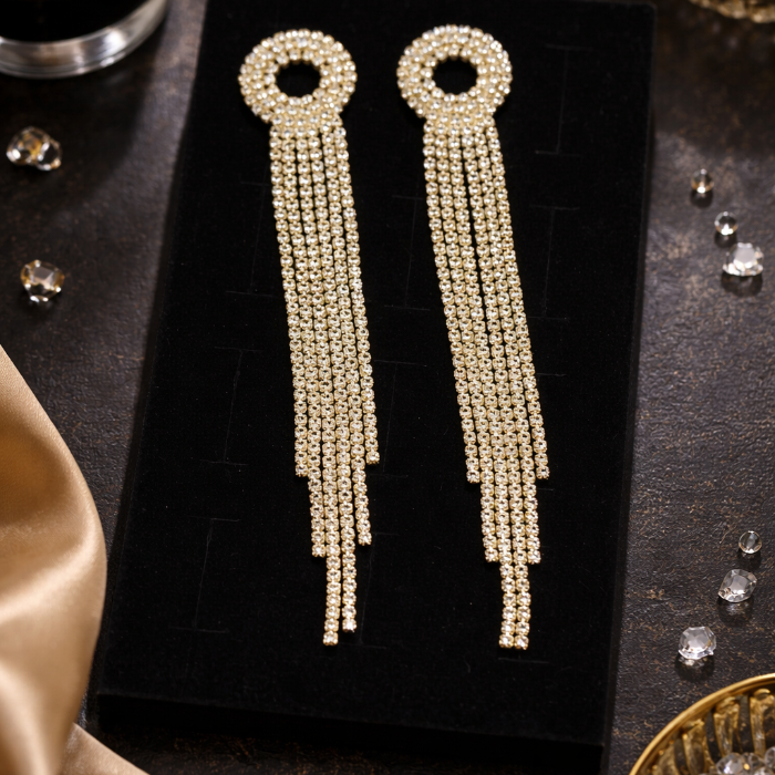Серьги длинные висячие со стразами "Вечерние", цвет: шампань, арт.012.012 3 фото