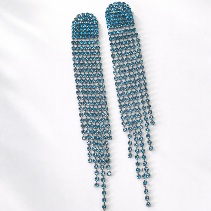Серьги длинные висячие со стразами "Вечерние", цвет: тёмный синевато-зелёный, арт.012.010 2 фото