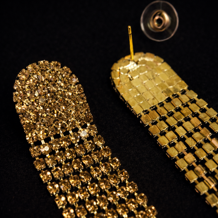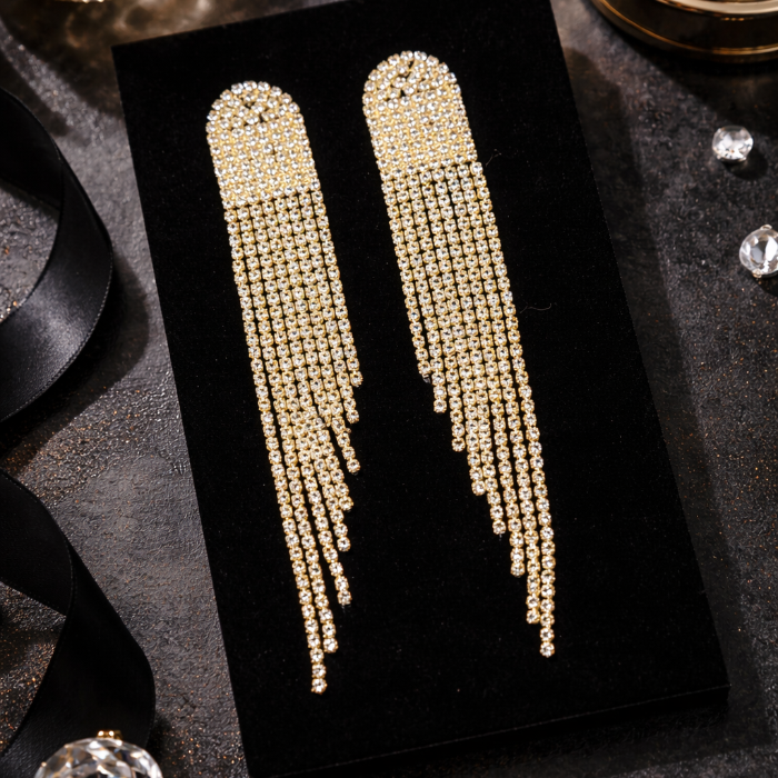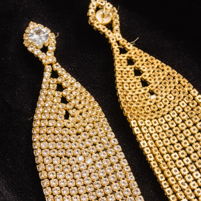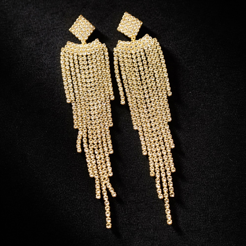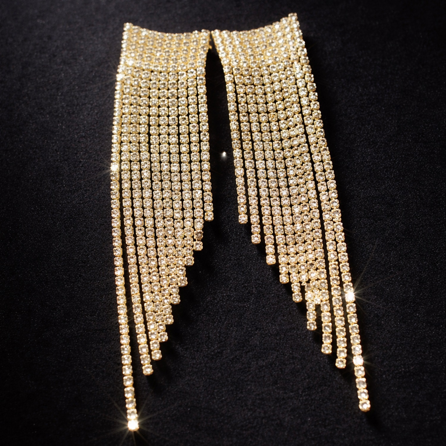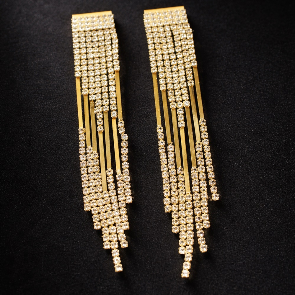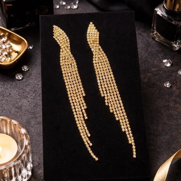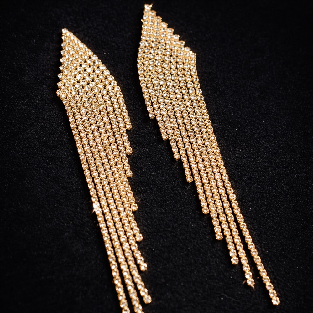 Серьги длинные женские вечерние со стразами, цвет: золотистый и прозрачный, арт.012.041 2 фото