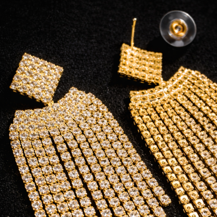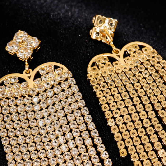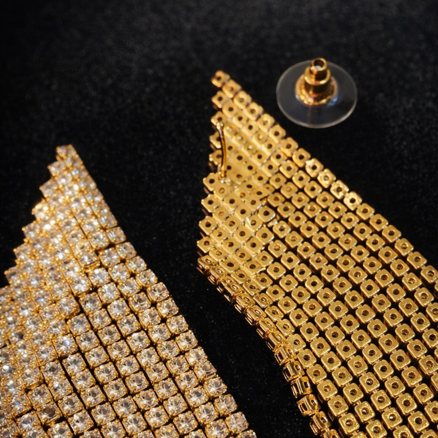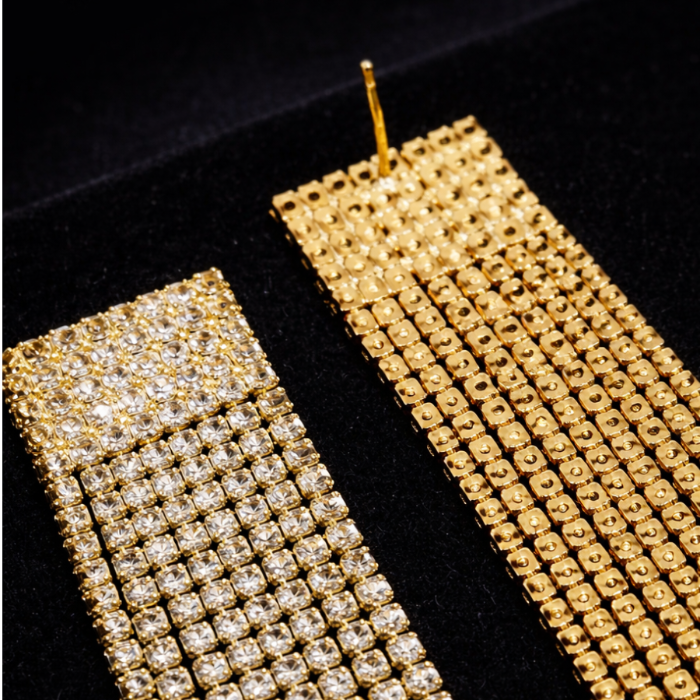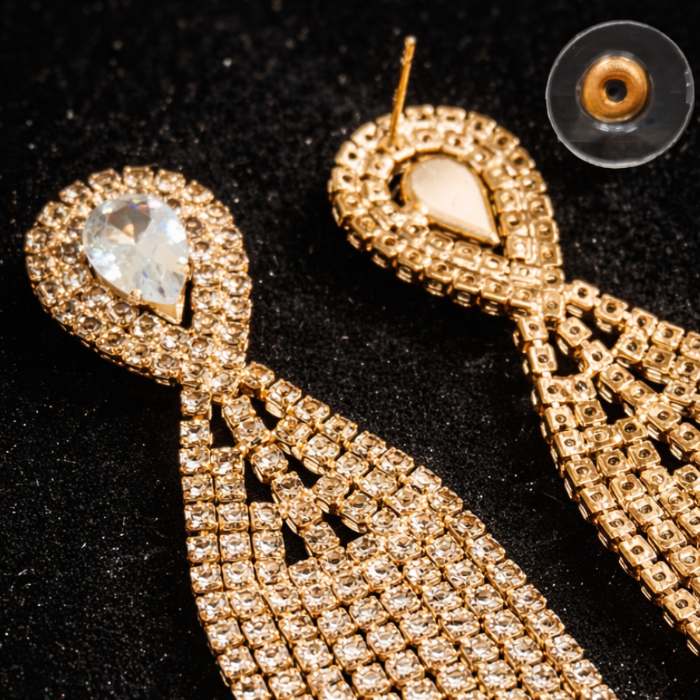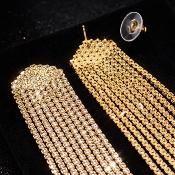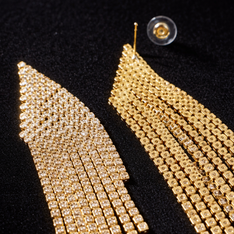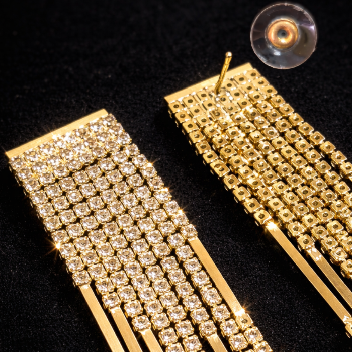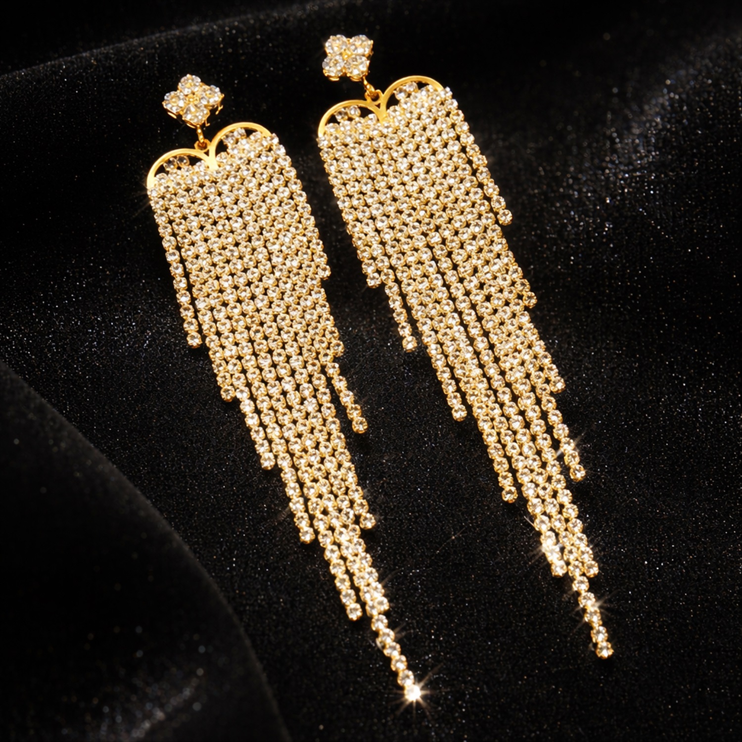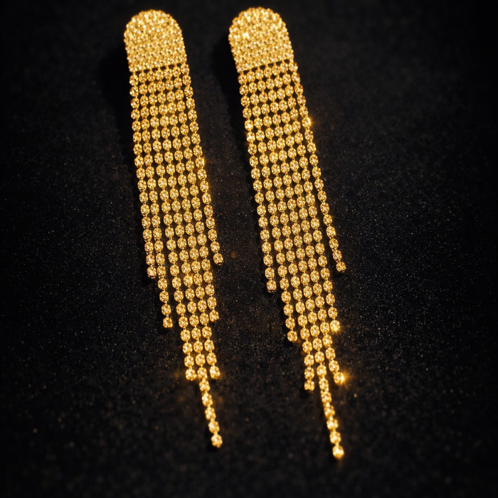 Серьги длинные женские вечерние со стразами, цвет: золотистый и прозрачный, арт.012.041 2 фото