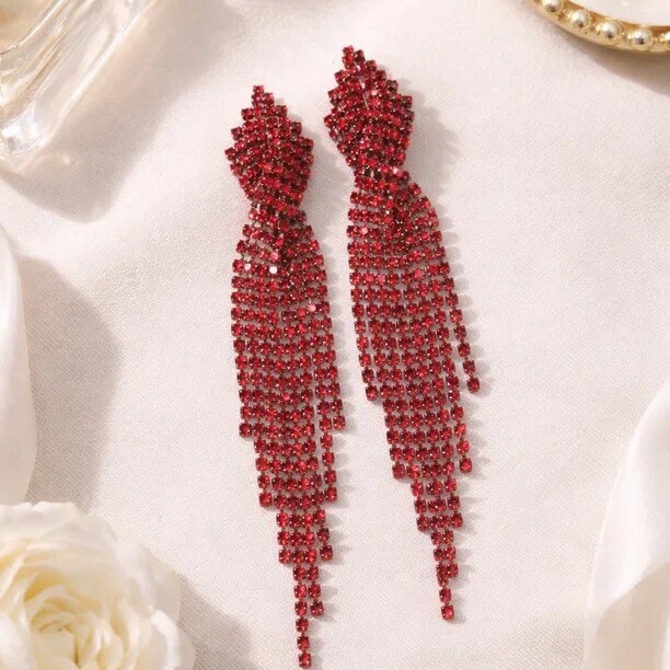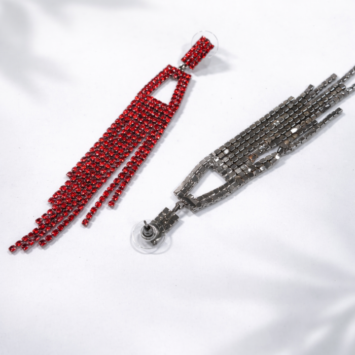 Серьги длинные висячие со стразами "Вечерние", цвет: красный, арт.012.017 2 фото