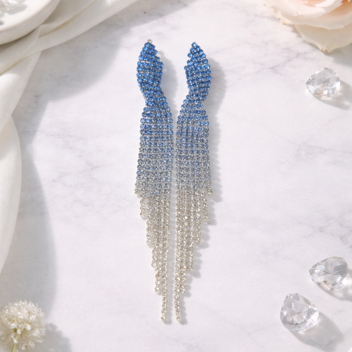 Серьги длинные висячие со стразами "Вечерние", цвет: серебристый и голубой, арт.012.024 2 фото