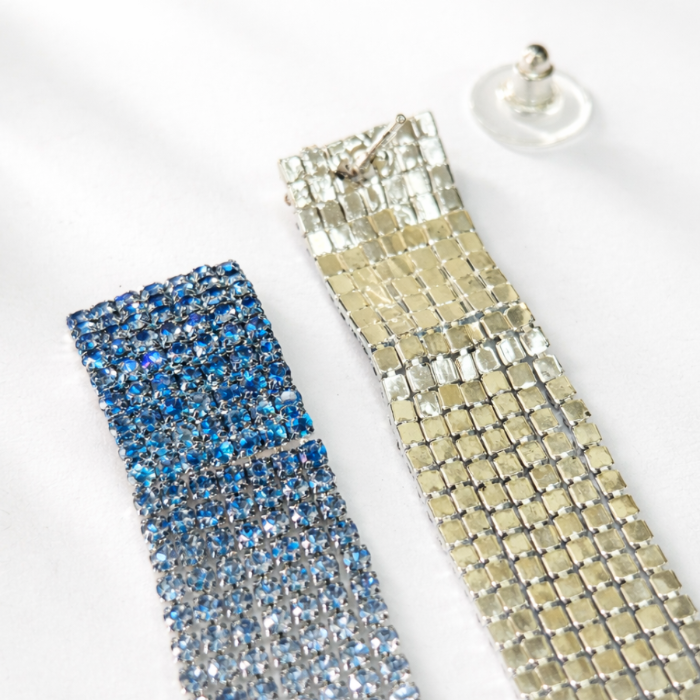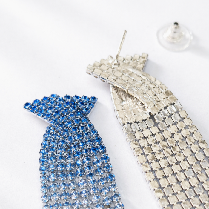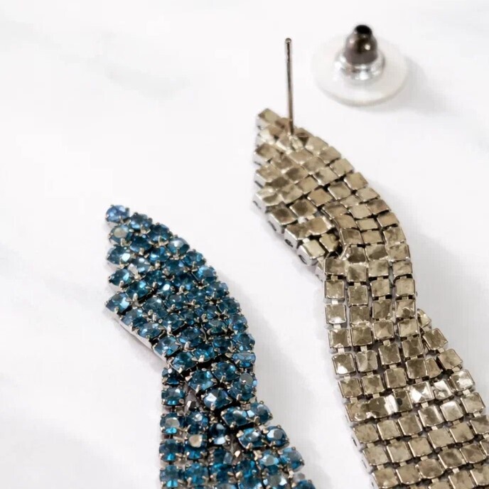 Серьги длинные висячие со стразами "Вечерние", цвет: серебристый и голубой, арт.012.025 2 фото
