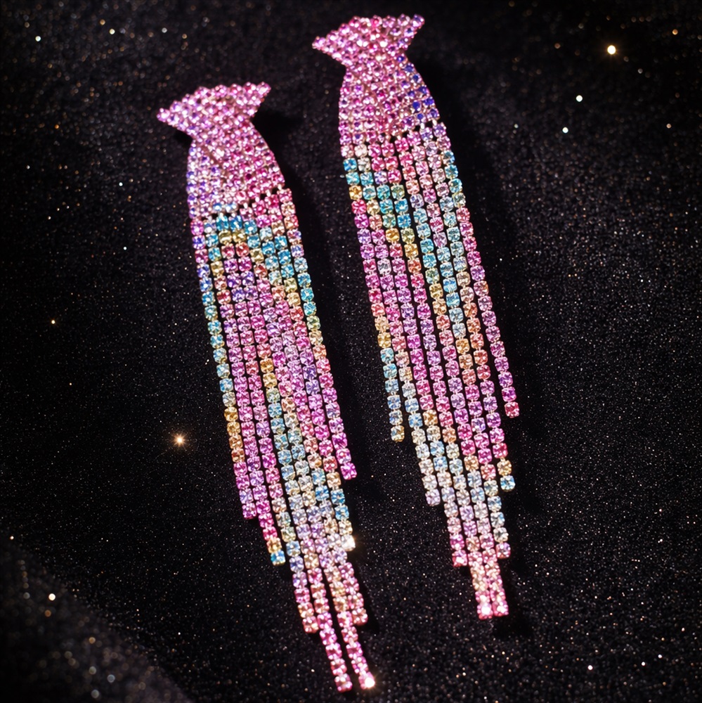 Серьги длинные висячие со стразами "Вечерние", цвет: розовый, голубой и фиолетовый, арт.012.043 2 фото