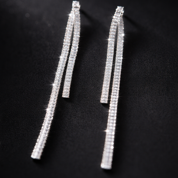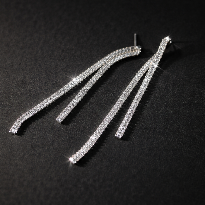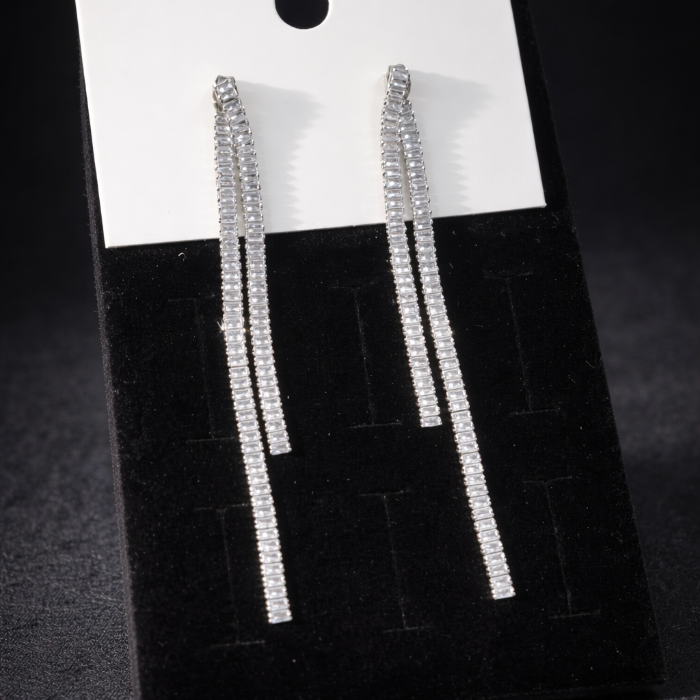 Серьги длинные висячие со стразами "Вечерние", цвет: серебристый и прозрачный, арт.012.058 2 фото