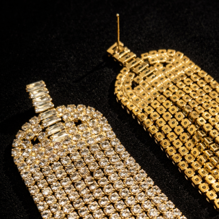 Серьги длинные женские вечерние со стразами, цвет: золотистый и прозрачный, арт.012.047 2 фото