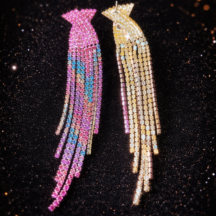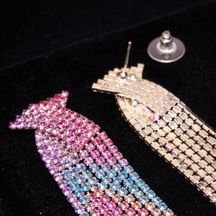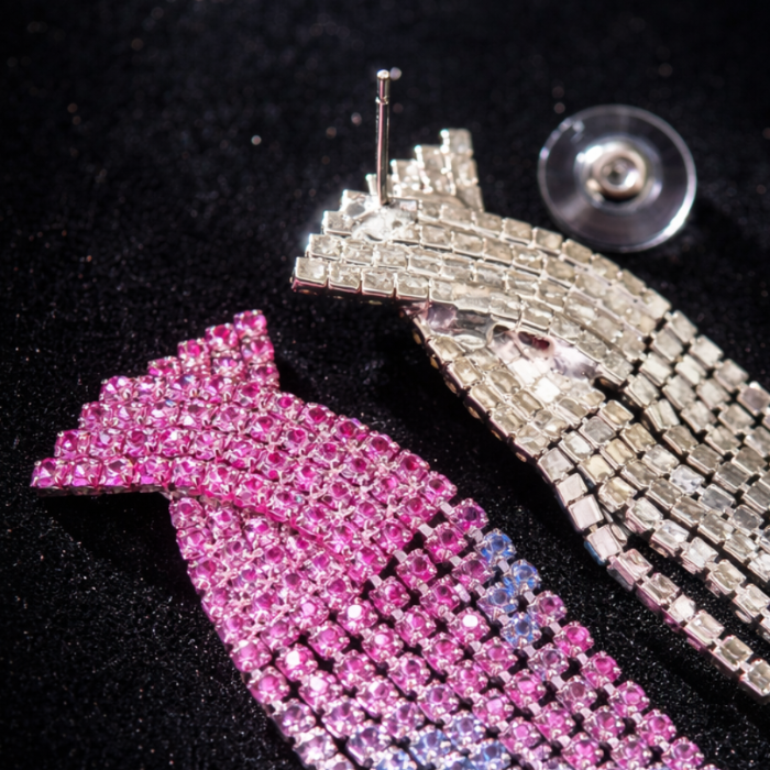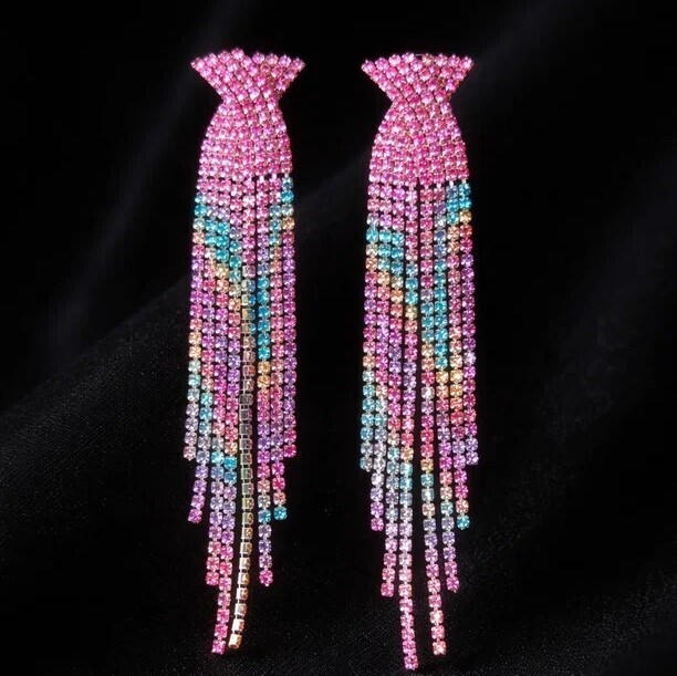 Серьги длинные висячие со стразами "Вечерние", цвет: розовый, голубой,фиолетовый, арт.012.028 3 фото