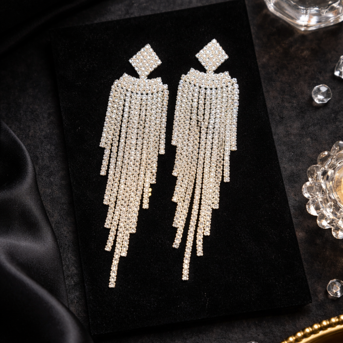Серьги длинные висячие со стразами "Вечерние", цвет: шампань, арт.012.022 2 фото