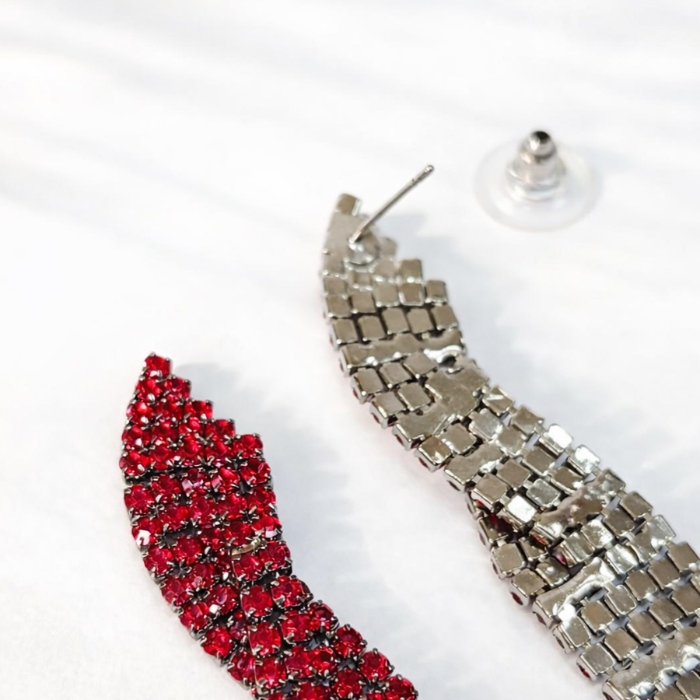 Серьги длинные висячие со стразами "Вечерние", цвет: красный, арт.012.021 3 фото