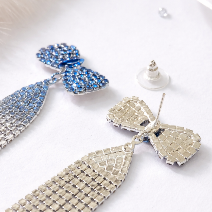 Серьги длинные висячие со стразами "Вечерние", цвет: серебристый и голубой, арт.012.027 3 фото