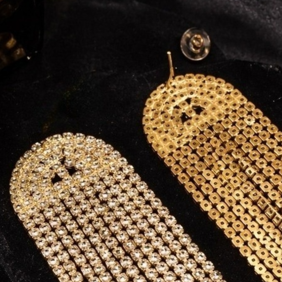 Серьги длинные женские вечерние со стразами, цвет: золотистый и прозрачный, арт.012.037 2 фото