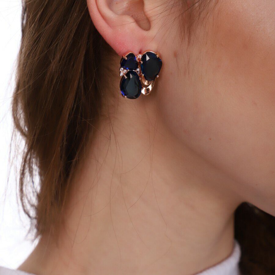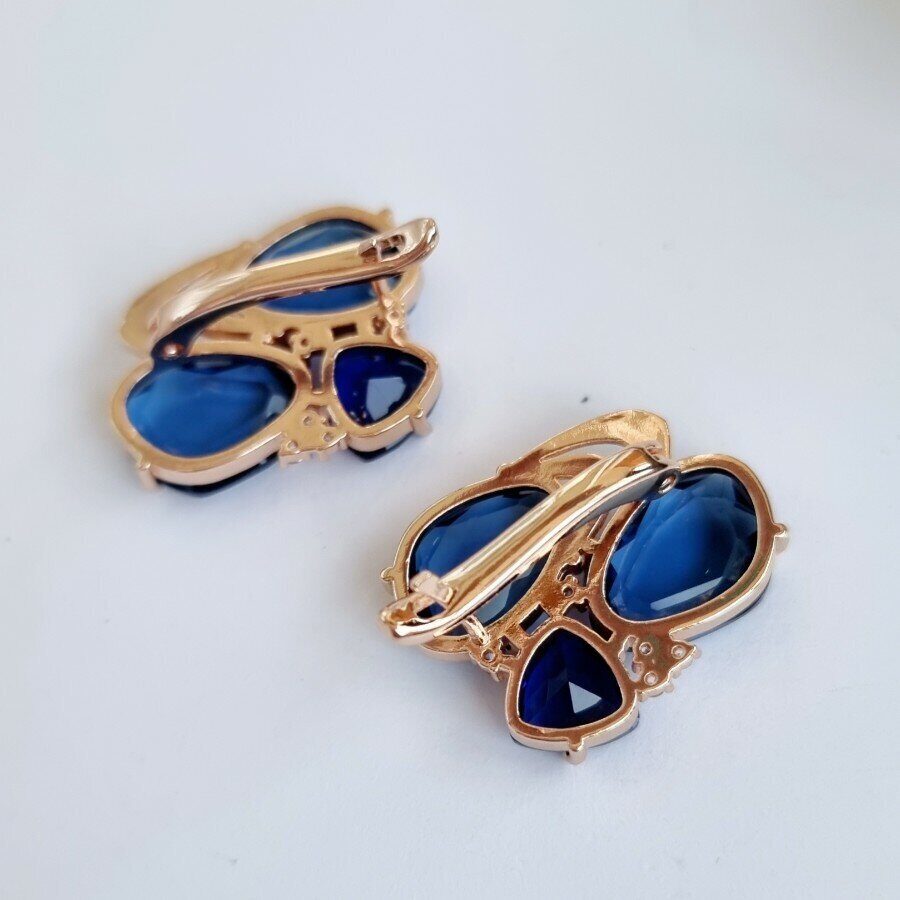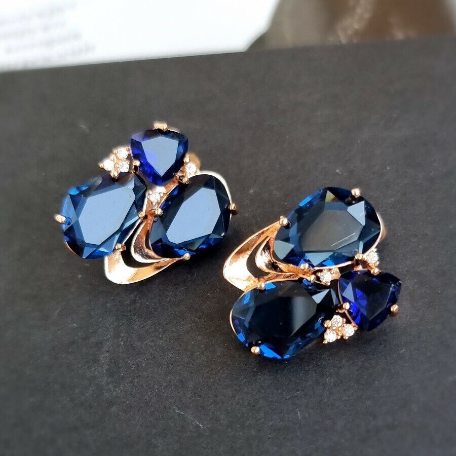Серьги коллекция "Эксклюзив" покрытие позолота, темно-синие  камни, крупные, 23208, арт. 947.205 6 фото