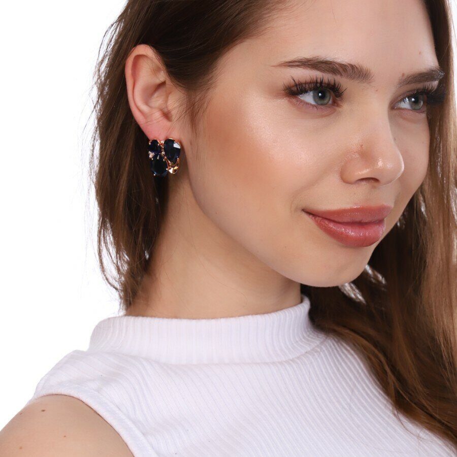 Серьги ювелирная бижутерия коллекция "Дубай" позолота, цвет камня: синий, 37122, арт. 947.259 2 фото