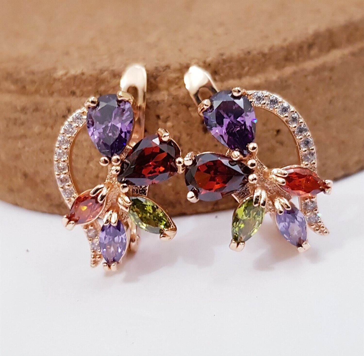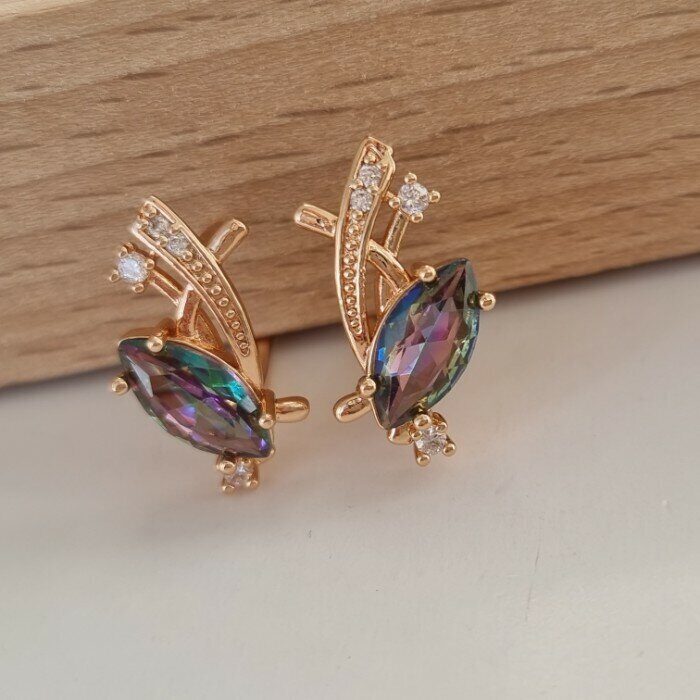 Серьги ювелирная бижутерия позолота, фианит цвета мистик, арт. 947.131 2 фото