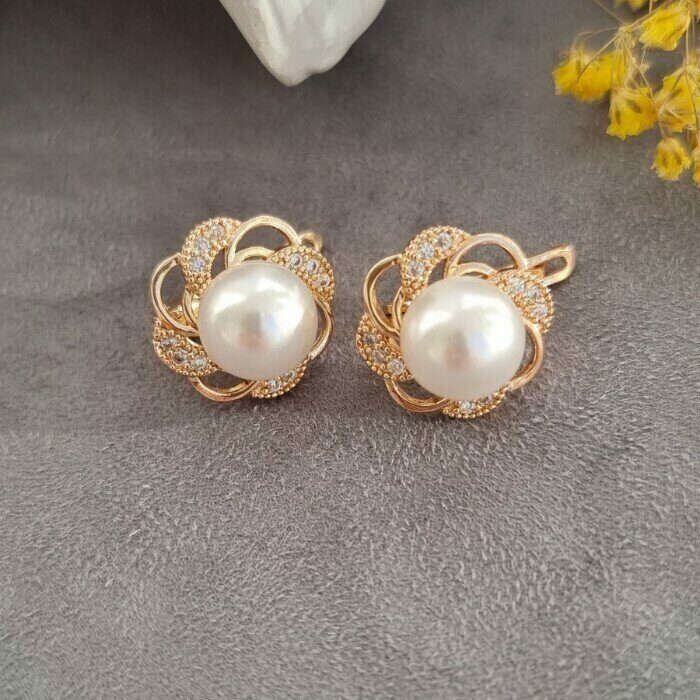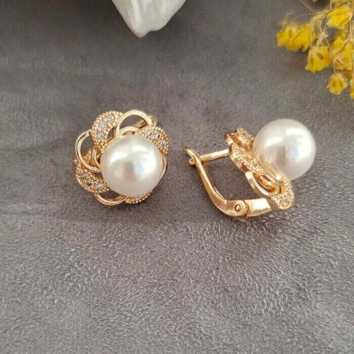Серьги коллекция "Дубай" покрытие позолота, с иск. жемчугом, 871231, арт. 032.029 3 фото