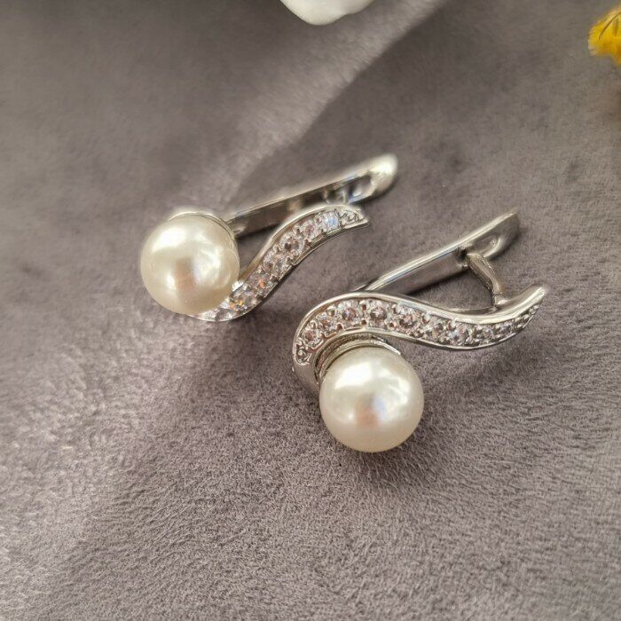 Серьги коллекция "Дубай" покрытие посеребрение, с иск. жемчугом, 87109, арт.947.266 4 фото