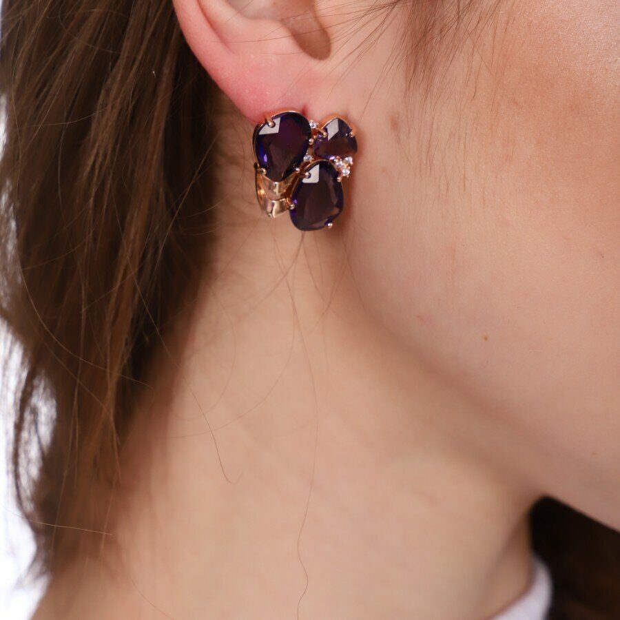 Серьги коллекция "Эксклюзив" покрытие позолота, фиолетовые камни, крупные, 23208, арт. 947.207 4 фото