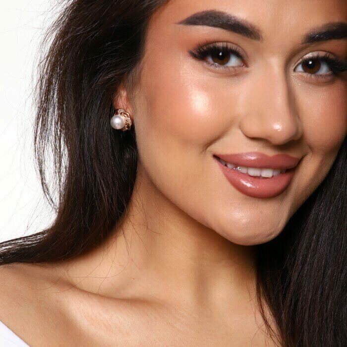 Серьги ювелирная бижутерия коллекция "Дубай" позолота, цвет камня: перламутровый, 37122, арт. 947.261