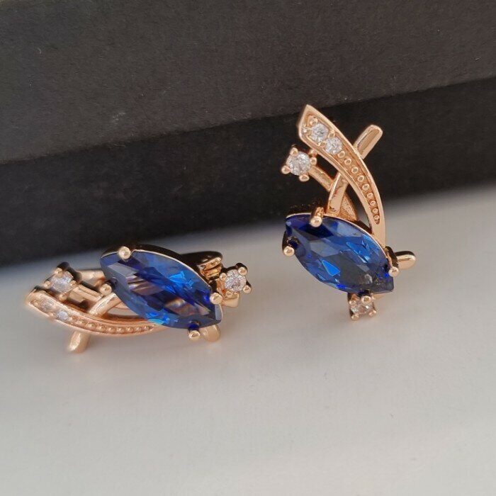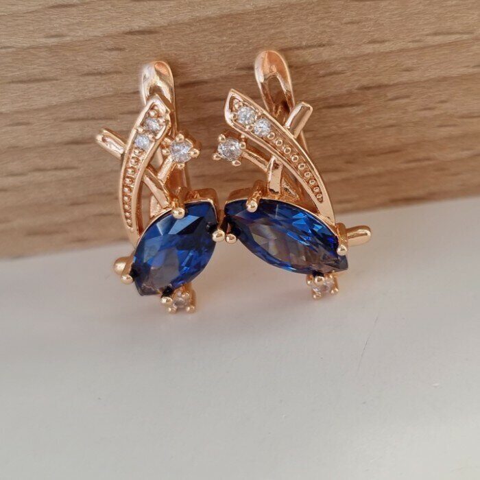 Серьги коллекция "Дубай" покрытие позолота, темно-синий камень, 54145, арт. 947.216 6 фото