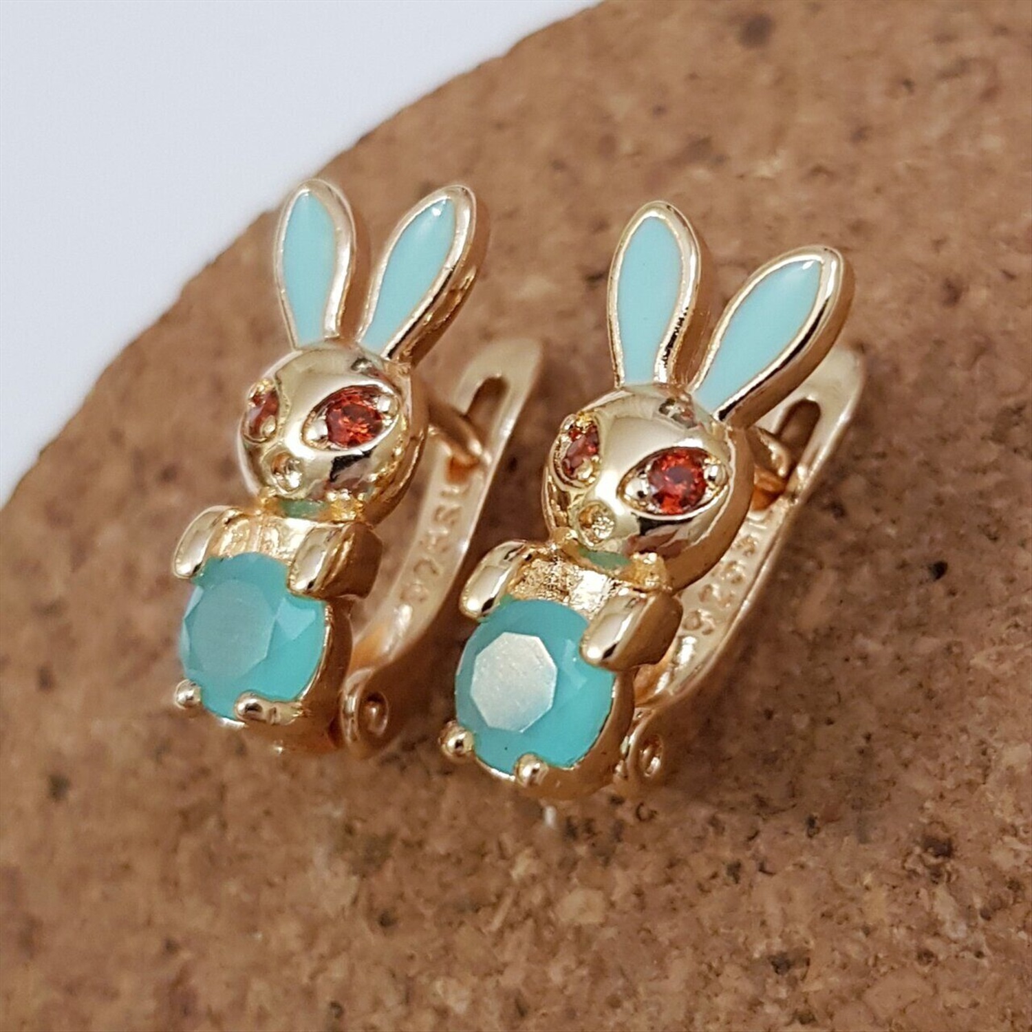 Серьги детские коллекция "Дубай" покрытие позолота, бирюзовый камень, 301020, арт.647.519