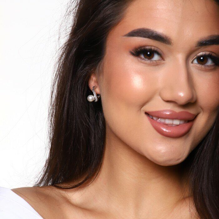Серьги коллекция "Дубай" покрытие посеребрение, цвет камня: перламутровый, арт. 847.614 4 фото