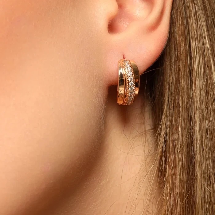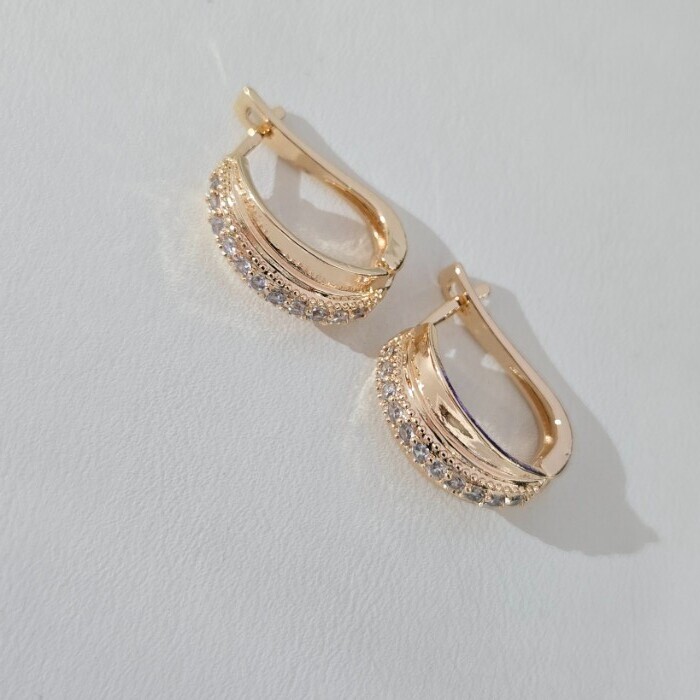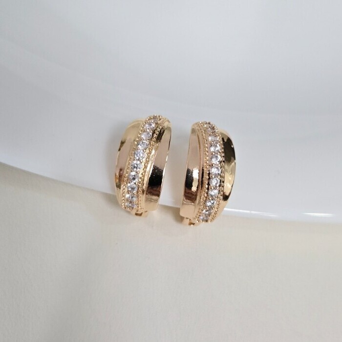 Серьги ювелирная бижутерия Итальянское золото (покрытие желтое 14к), вставка: фианиты, цвет: прозрачный, арт.216.423 2 фото