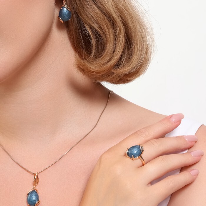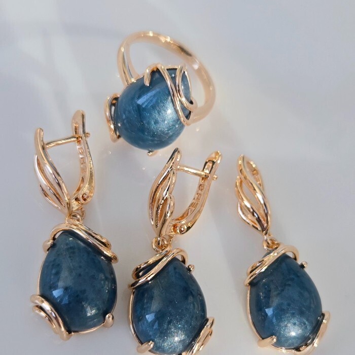 Комплект ювелирной бижутерии коллекция "Дубай" серьги и кольцо 20 р, покрытие позолота, вставка: искусственный камень синего цвета, Уценка, арт.08.3593-20 (314.807-20) 2 фото