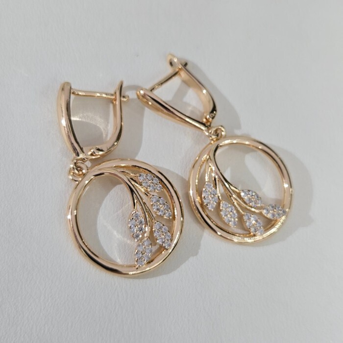 Серьги подвески ювелирная бижутерия коллекция "Дубай", покрытие позолота, вставка: фианиты, цвет: прозрачный, арт.313.363 2 фото