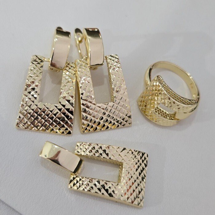 Комплект ювелирной бижутерии Итальянское золото (покрытие желтое 14к), серьги, кулон и кольцо 17 р, арт.313.309-17