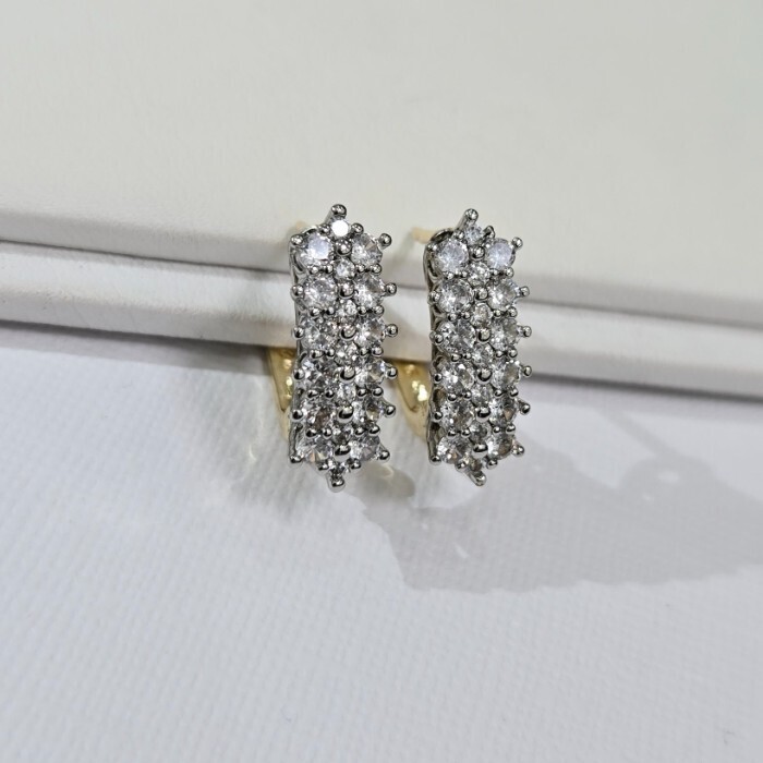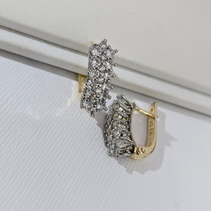 Серьги ювелирная бижутерия Итальянское золото (покрытие желтое 14к), вставка: фианиты, цвет: прозрачный, арт.313.304 2 фото