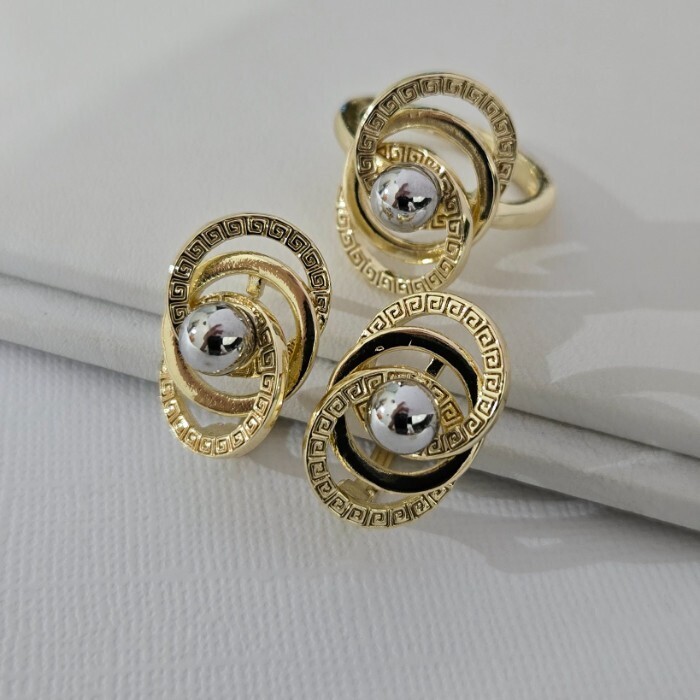 Комплект ювелирной бижутерии Итальянское золото (покрытие желтое 14к), серьги и кольцо 19 р, арт.313.316-19