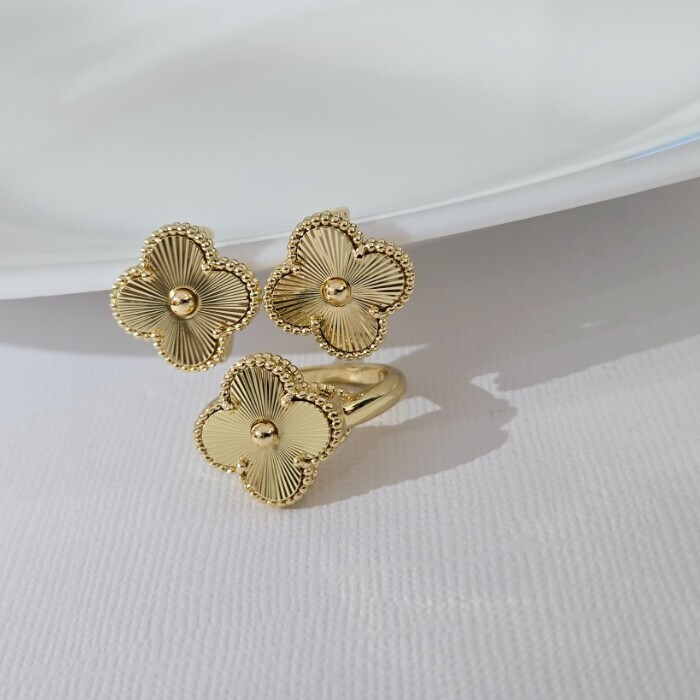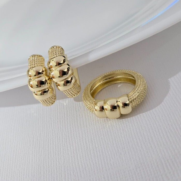 Комплект ювелирной бижутерии Итальянское золото (покрытие желтое 14к), серьги и кольцо 20 р, арт.313.306-20